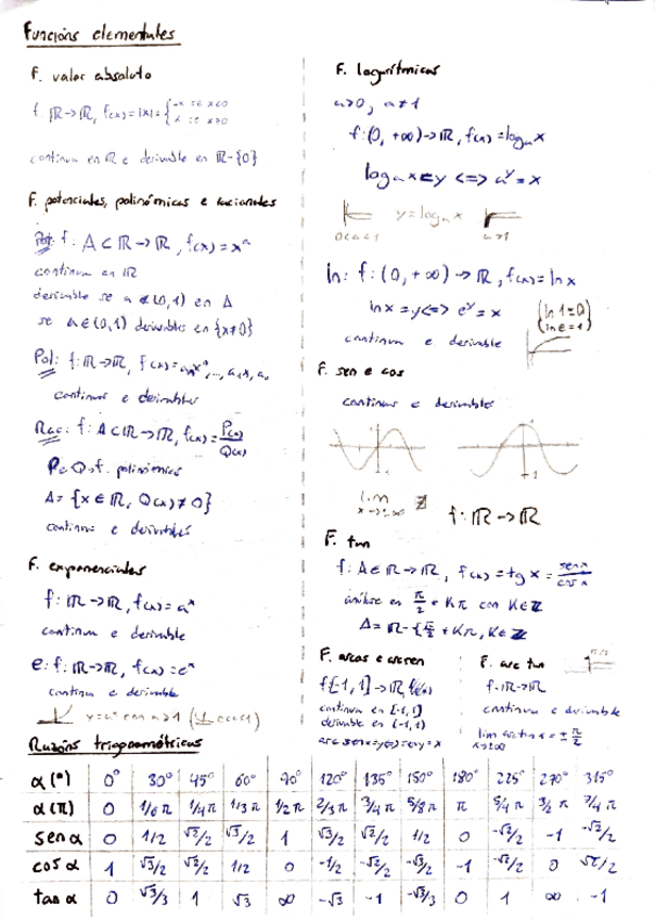 Derivadas, f. elementales, razones trigonométricas y signo de las cuadráticas
