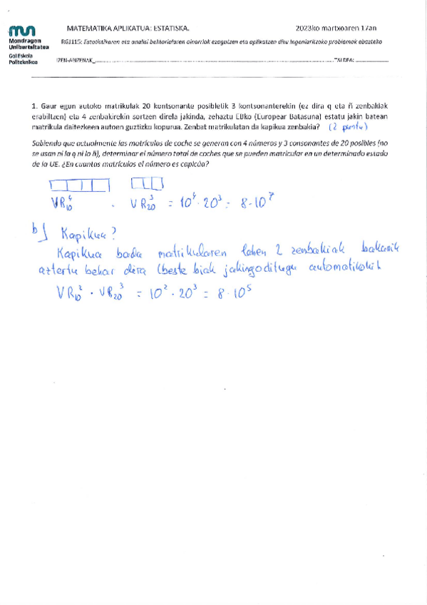 He publicado nuevos examenes de 1º Matemáticas Aplicadas a la Ingeniería: Estatistika