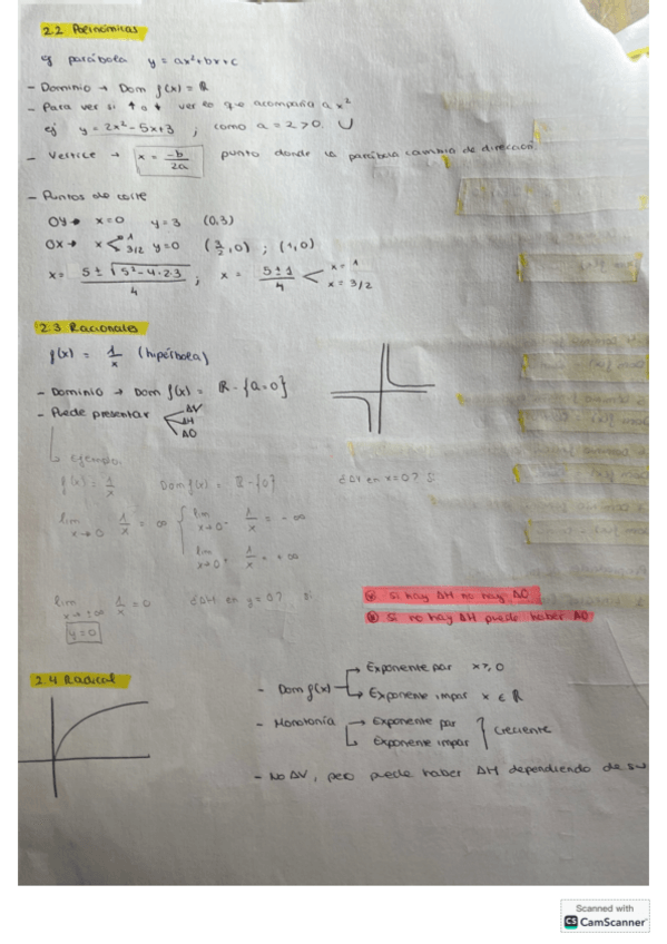 Todas las funciones y todas las indeterminaciónes (límites) necesarios para el desarrollo del tema.