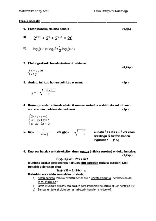 He publicado nuevos examenes de 1º Matemáticas Aplicadas a las Ciencias Sociales I: Matematika-azterketa-GLOBALA.pdf