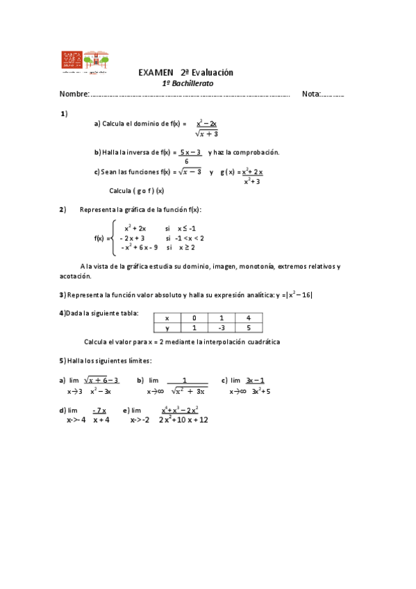 He publicado nuevos examenes de 1º Matemáticas Aplicadas a las Ciencias Sociales I: Ex-Funciones-19-20.docx.pdf