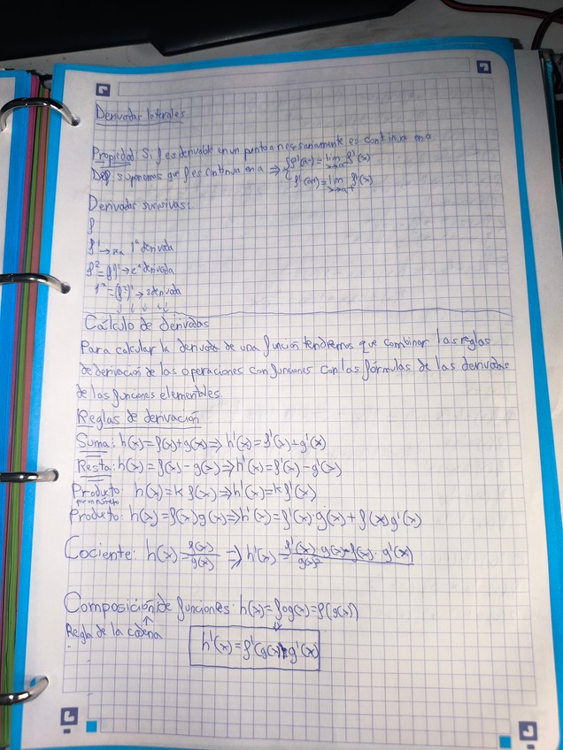Teoría de las derivadas. Reglas de derivacion. Curvatura etc...