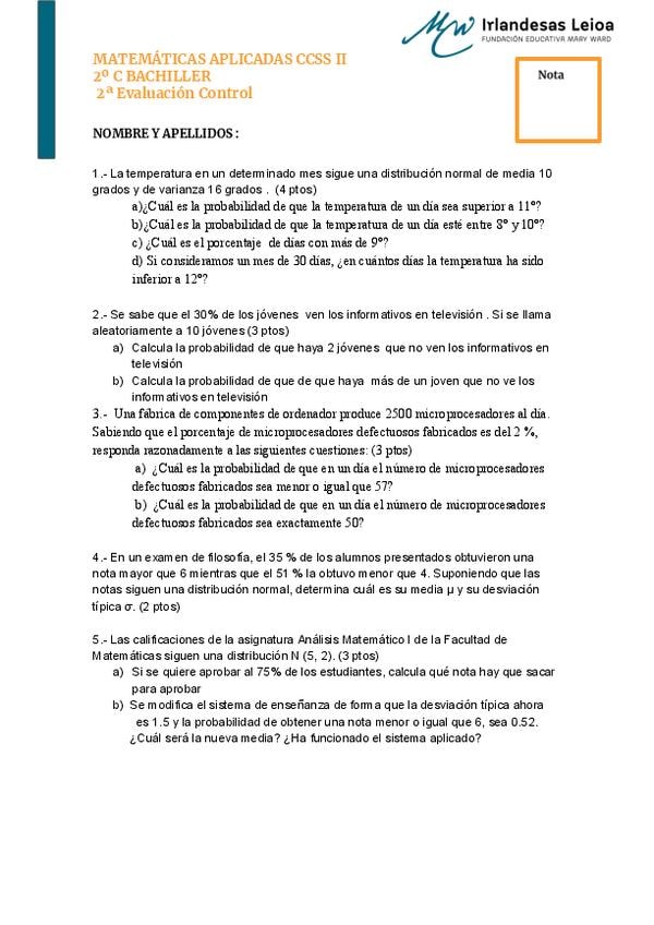 EXÁMENES 2ºBACH MATES CCSS II CURSO 2025-2026
