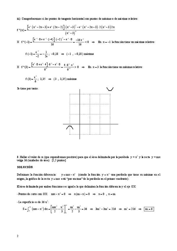 Aquí la segunda parte del examen de derivadas (la primera parte es el archivo anterior): la continuidad de f(x) y su monotomia, curvatura en un problema y hallar los valores de las constantes de a,b y c