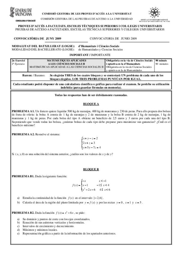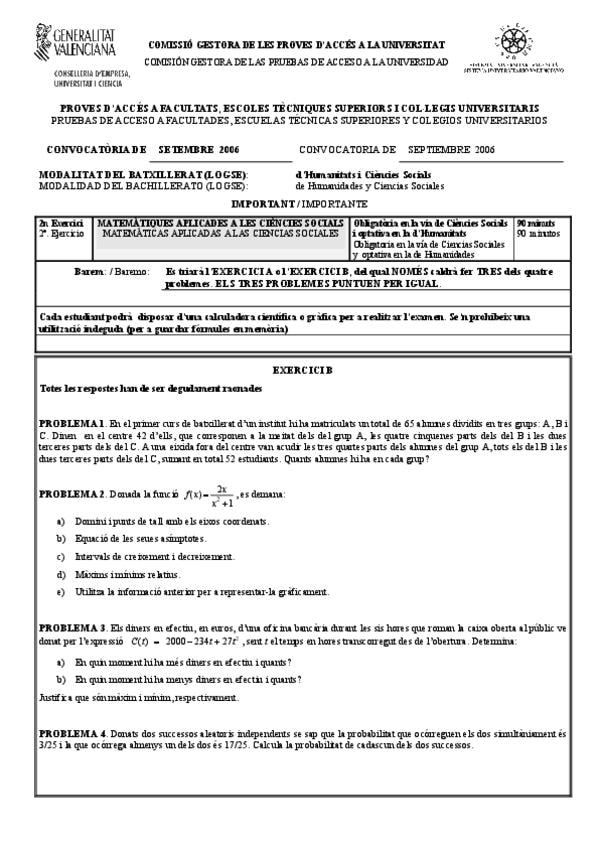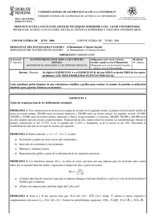 He publicado nuevos examenes de 2º Matemáticas aplicadas a las Ciencias Sociales II: EBAU-MATEMATICAS-APLICADAS-CCSS-COMUNIDAD-VALENCIANA-JUNIO-2006.pdf