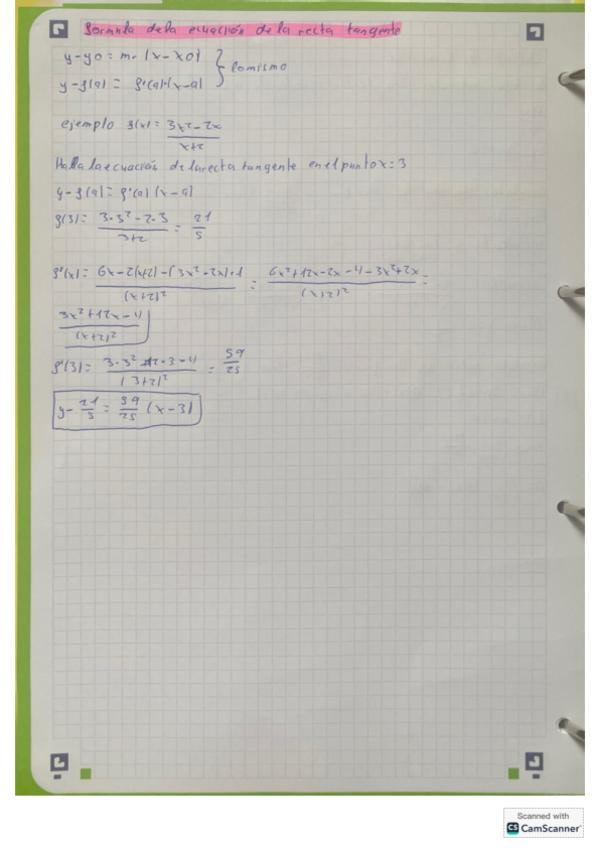 Formula para resolver los problemas de recta tangente, ejemplo explicativo en el PDF