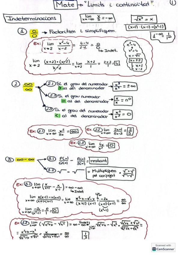 Limits i indeterminacions. EBAU, 2 batxillerat, mate socials en valencià/català.
