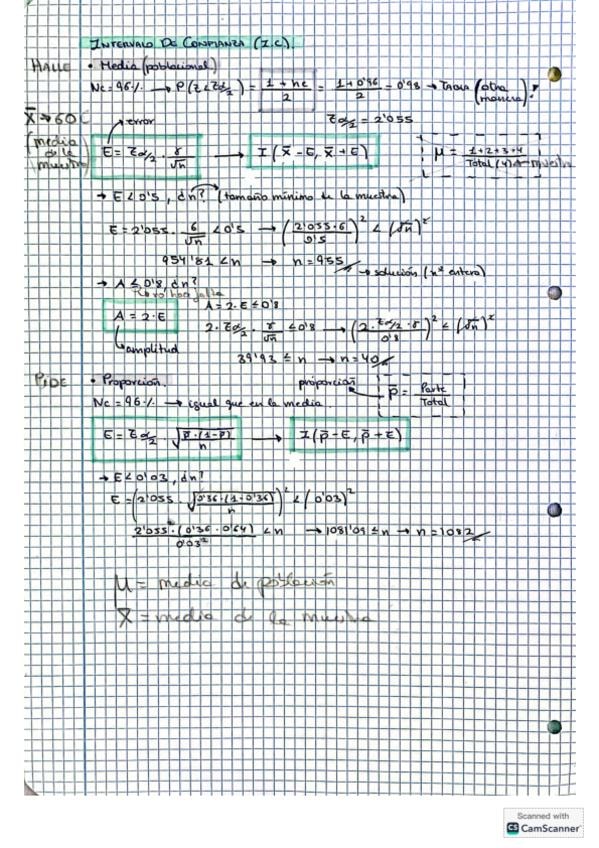 apuntes de inferencia estadistica completos con formulas explicadas, ejercicios resueltos, problemas de selectividad de años anteriores...(intervalos característicos, distribución de muestras, teorema central del límite, intervalos de confianza, calculo d