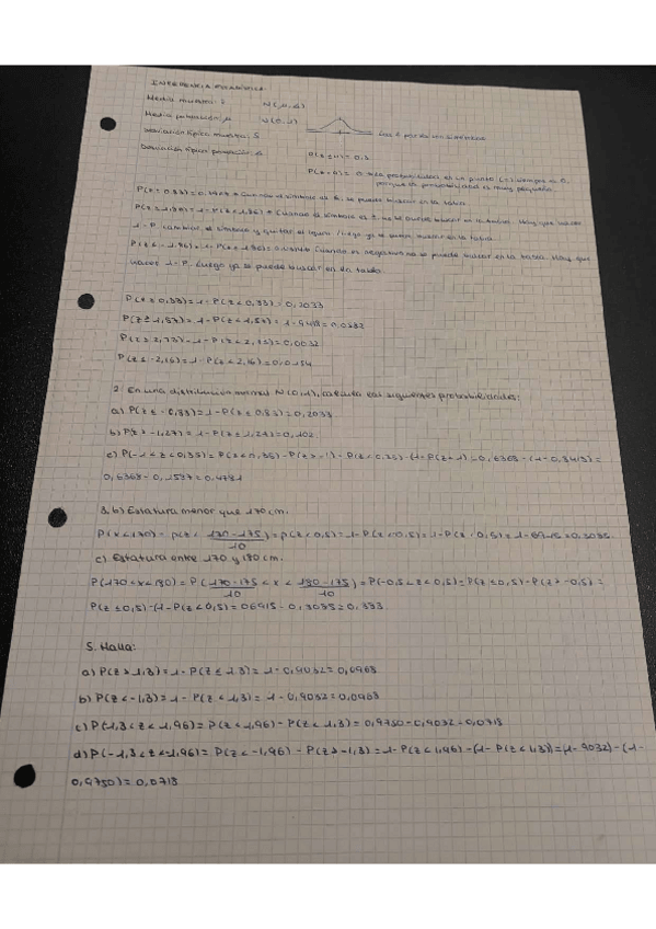 Fórmulas de Inferencia Estadística: Distribución normal, intervalo característico, tipificación, distribución de media muéstrales