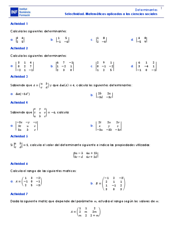 Resum complet de la teoria del tema de determinants i matrius, incloent exemples per entendre-ho millor i tips importants a tenir en compte