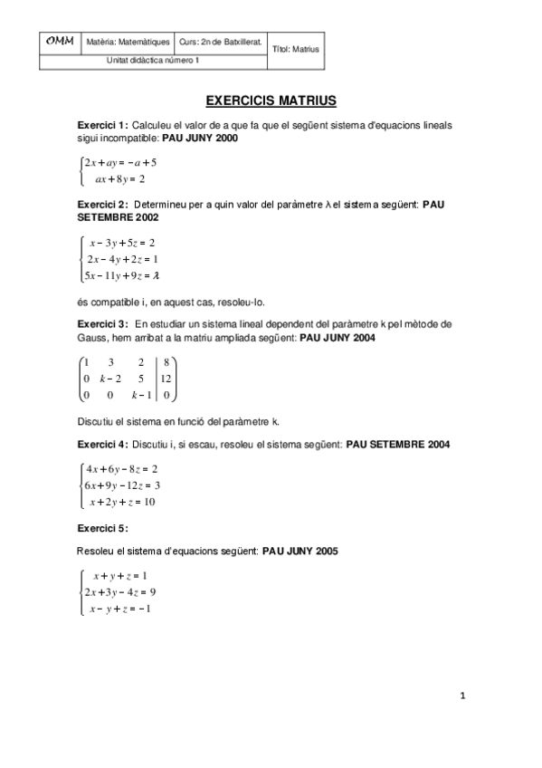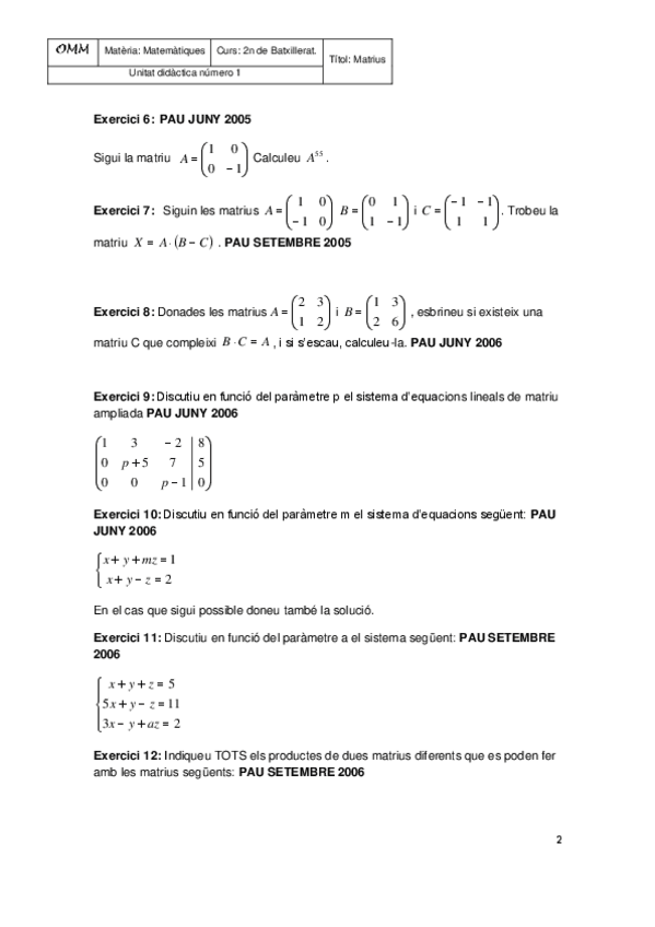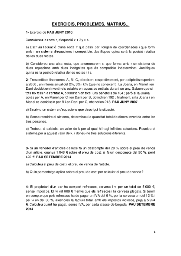 He publicado nuevos ejercicios de Matemáticas aplicadas a las Ciencias Sociales II: ExercicisproblemesmatriusdiscussioMatesII-1.pdf