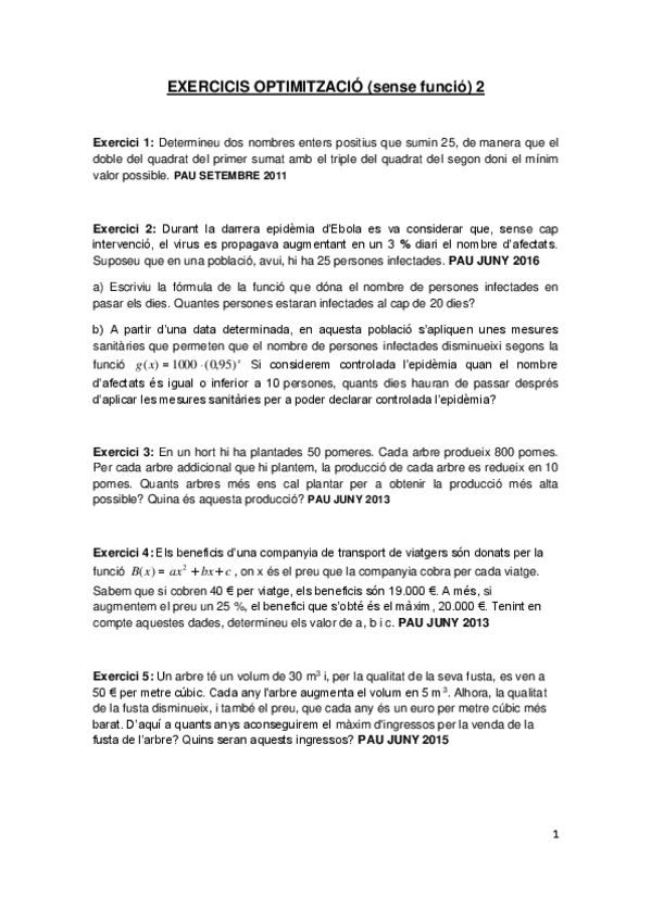 He publicado nuevos examenes de Matemáticas aplicadas a las Ciencias Sociales II: ExercicisOptimitzaciosensefuncio1-1.pdf