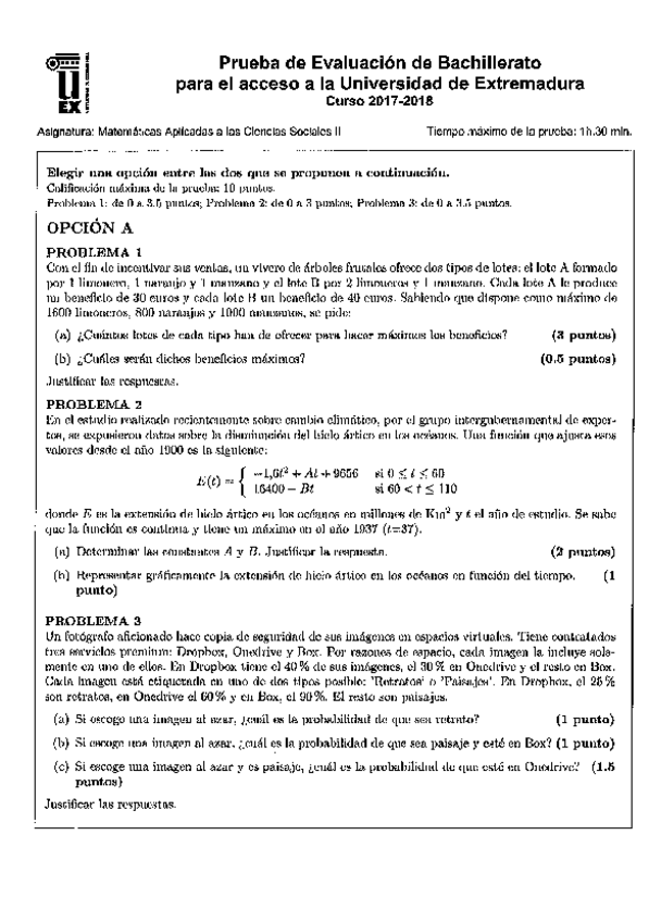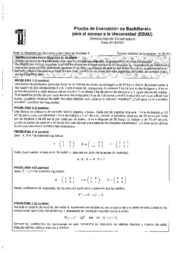 He publicado nuevos examenes de Matemáticas aplicadas a las Ciencias Sociales II: Examen-EBAU-Matematicas-Aplicadas-CC.SS-II-Ordinaria-22-23-Extremadura.pdf