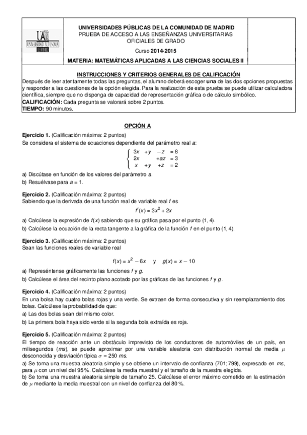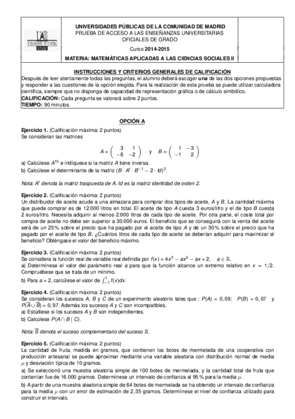 Matemáticas aplicadas a las Ciencias Sociales II