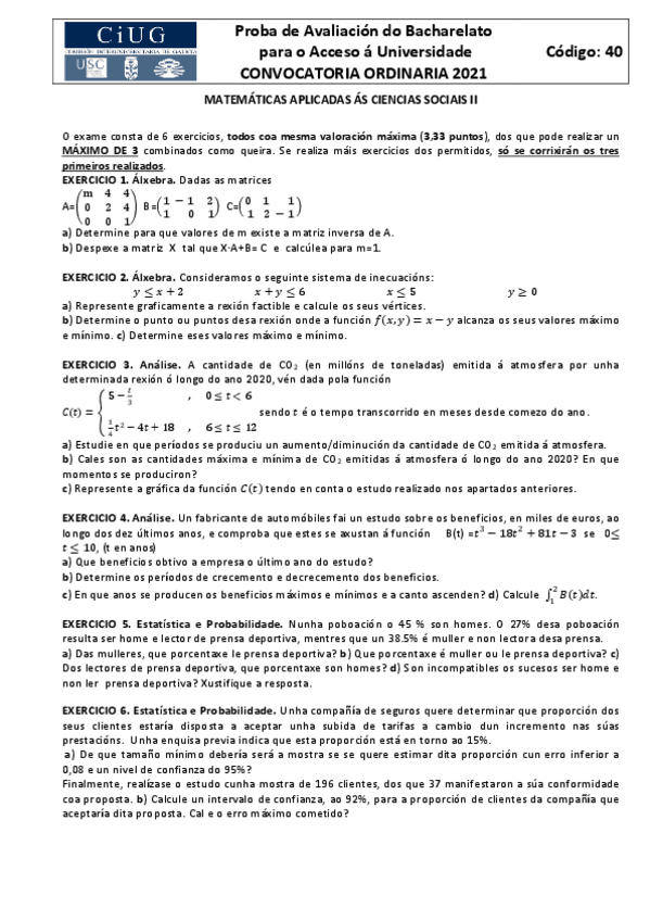 Matemáticas aplicadas a las Ciencias Sociales II