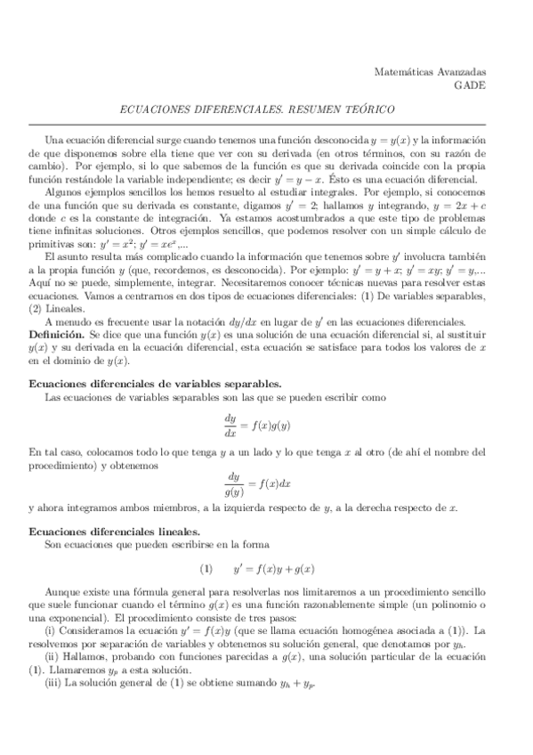 He publicado nuevos apuntes de 1º Matemáticas Avanzadas: ECUACIONES-DIFERENCIALES.pdf