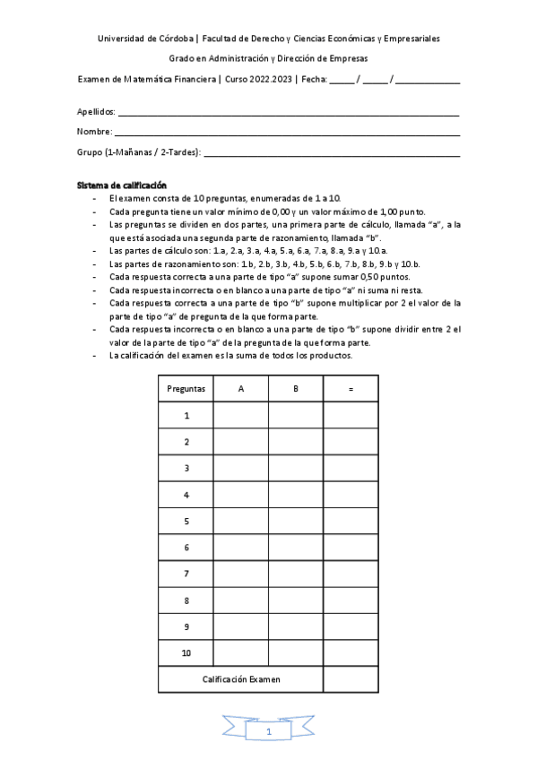 EXAMEN ENERO 2023 Matemáticas Financieras