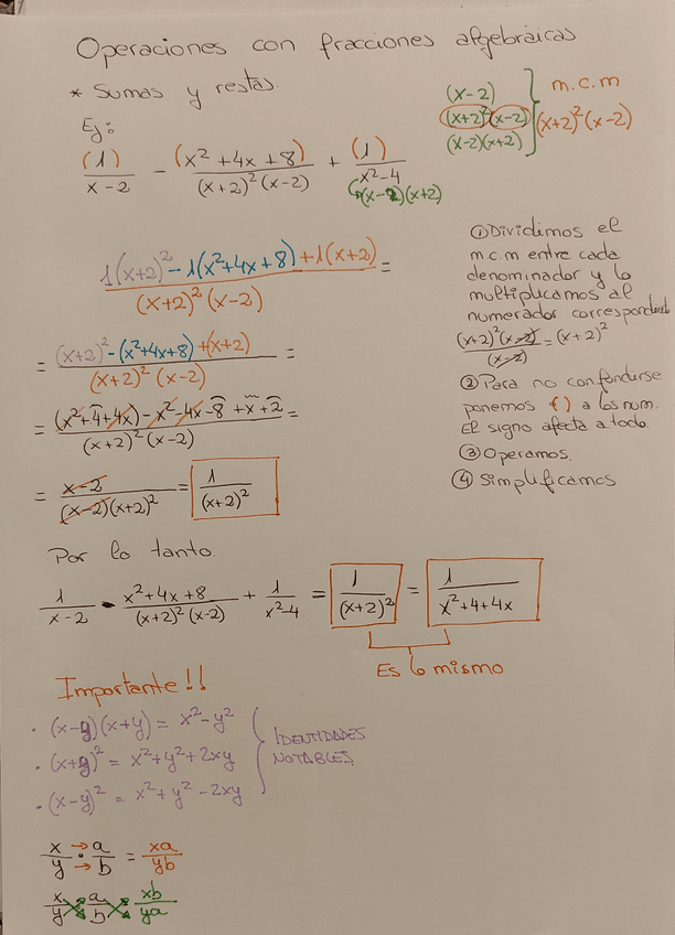 Ejemplo de una operación combinada de fracciones algebraicas. Paso a paso y con recordatorios importantes