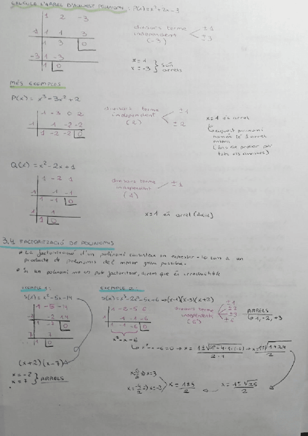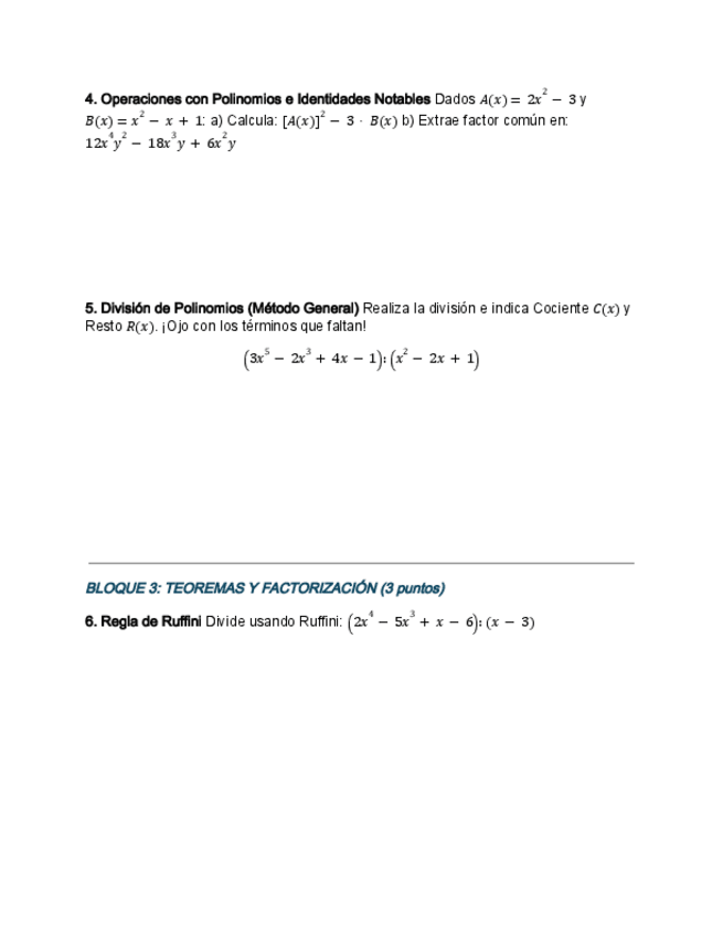 Polinomis, igualtats notables, arrels d'un polinomi, factorització polinomis, fraccions algebraiques, operacions amb fraccions algebraiques, divisió de polinomis, teorema del residu...