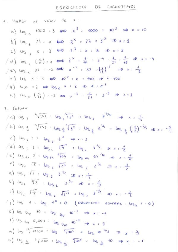 Ejercicios de logaritmos con variedad de dificultad, estos tienen la corrección al final del documento.