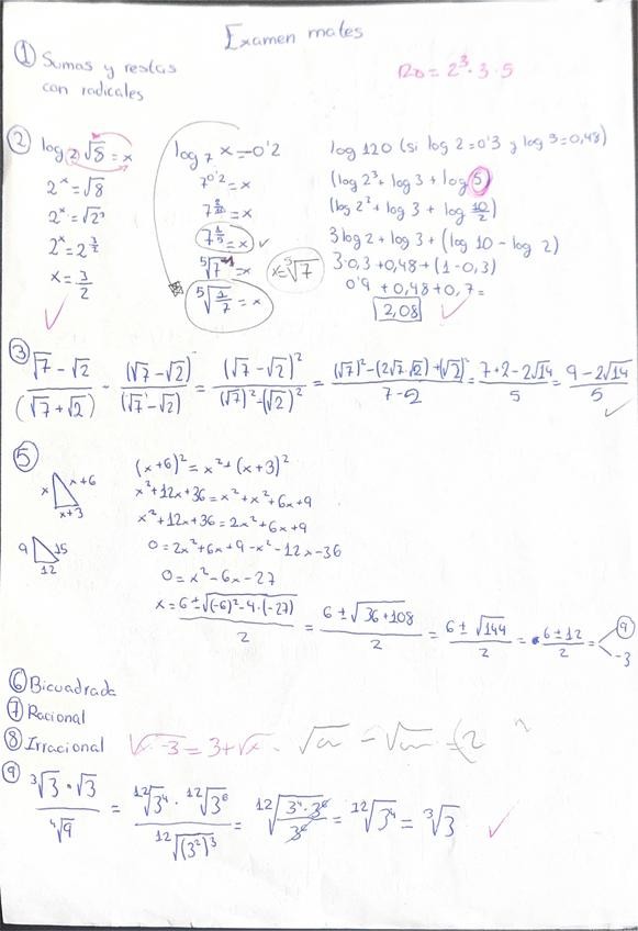 Ejercicios de repaso para antes del examen, números reales, logaritmos, y raíces