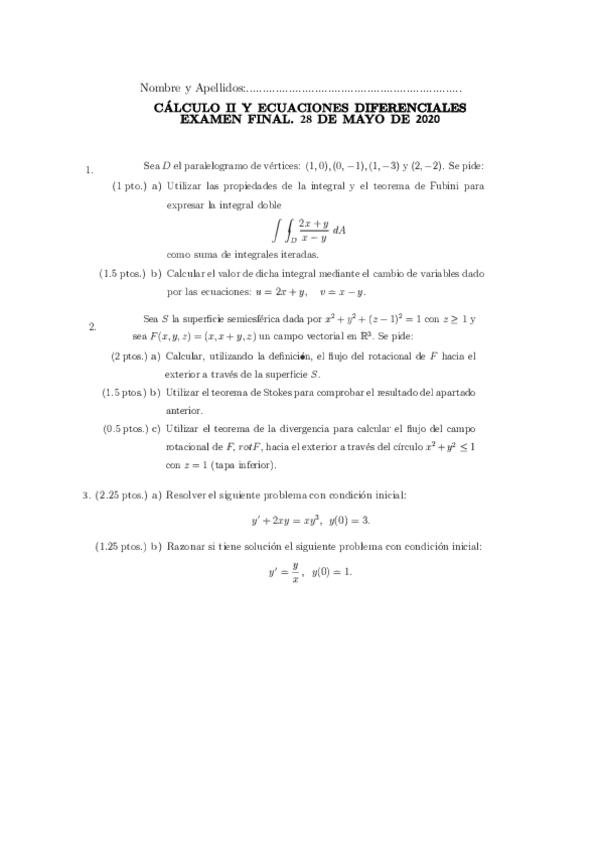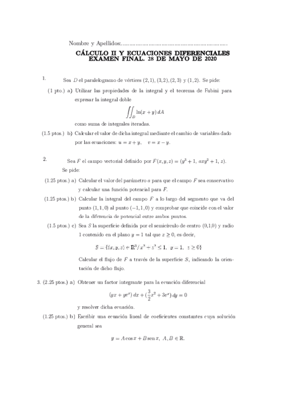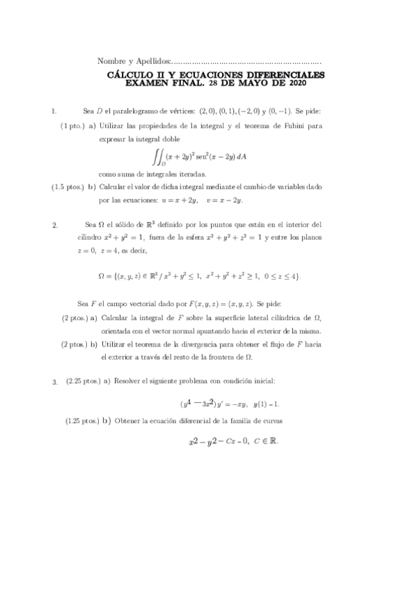 Segunda versión del examen de mayo 2020