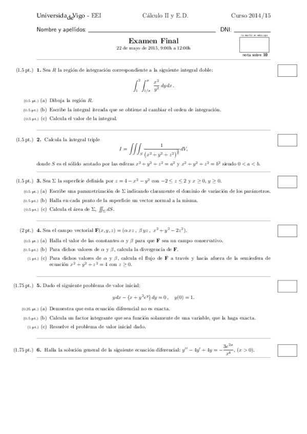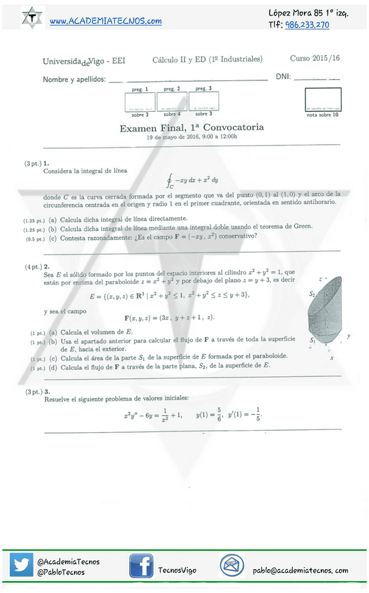 He publicado nuevos examenes de 1º Matemáticas: Cálculo Ii e Ecuacións Diferenciais: Mayo-2016.pdf