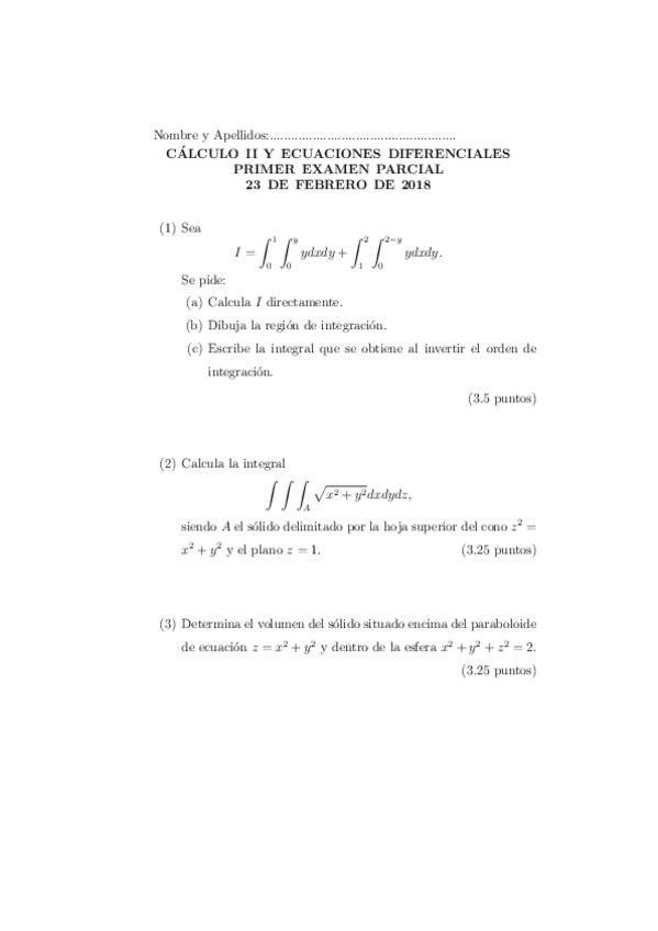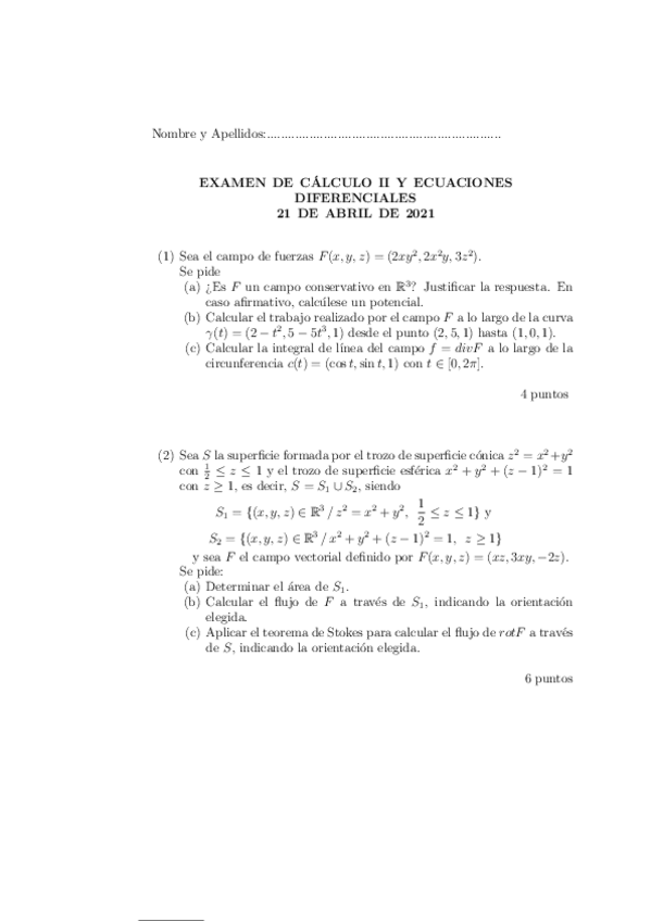 Exámenes Cálculo II