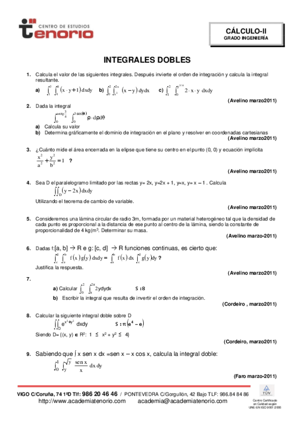 He publicado nuevos examenes de 1º Matemáticas: Cálculo Ii e Ecuacións Diferenciais: Academia-Tema2.pdf