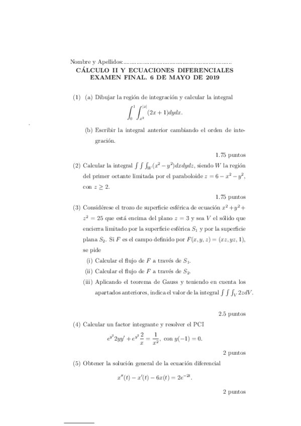 He publicado nuevos examenes de 1º Matemáticas: Cálculo Ii e Ecuacións Diferenciais: Mayo-2019.pdf