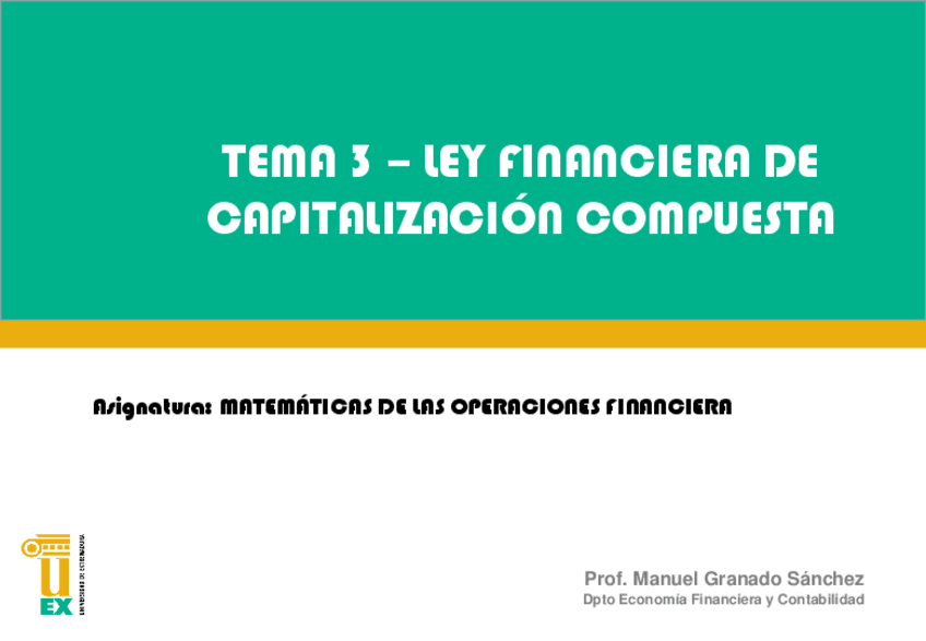 He publicado nuevos apuntes de 2º MATEMÁTICAS DE LAS OPERACIONES FINANCIERAS I: T-3-AL-6.-MOF-CAPITALIZACION-COMPUESTA.pdf