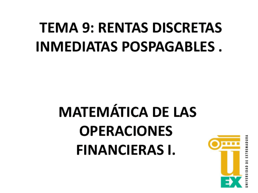 He publicado nuevos apuntes de 2º MATEMÁTICAS DE LAS OPERACIONES FINANCIERAS I: TEMA-9-RENTAS-DISCRETAS-INMEDIATAS-Y-POSPAGABLES.pdf