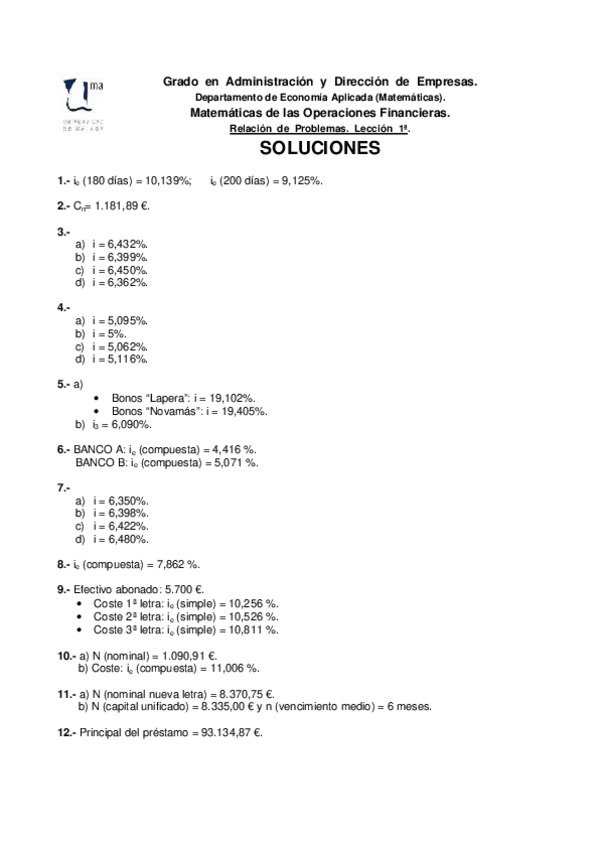 Ejercicios Resueltos Mat. Financieras