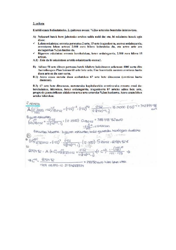 He publicado nuevos apuntes de 2º Matemáticas de las Operaciones Financieras: Ariketa eta azterketa ebatziak
