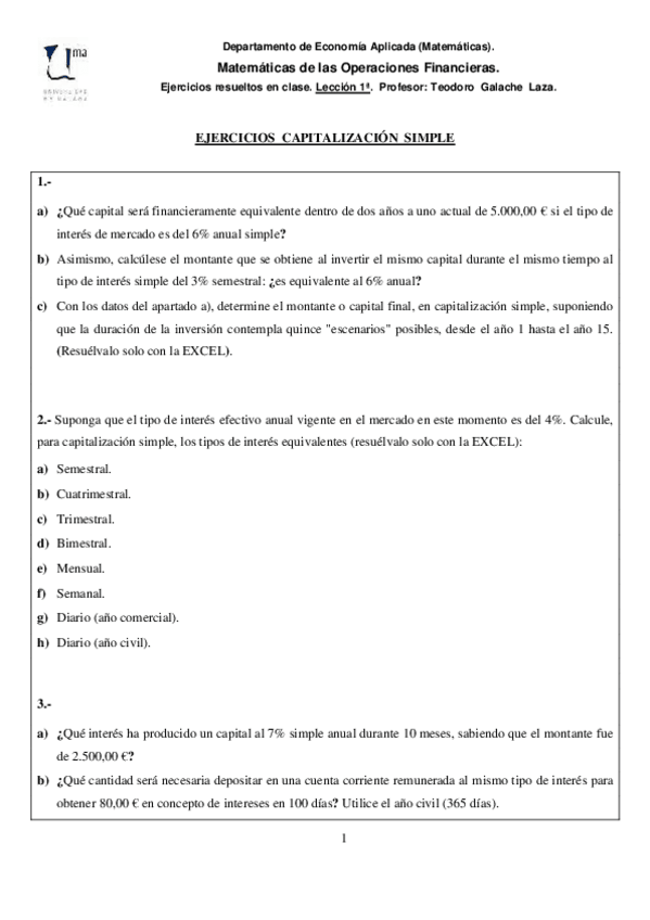 He publicado nuevos ejercicios de 1º Matemáticas de las Operaciones Financieras: EJERCICIOS-CAPITALIZACION-SIMPLE.pdf
