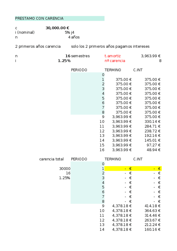 He publicado nuevos ejercicios de 1º Matemáticas de las Operaciones Financieras: prestamo-con-carencia.xlsx