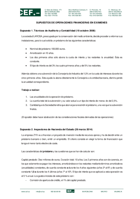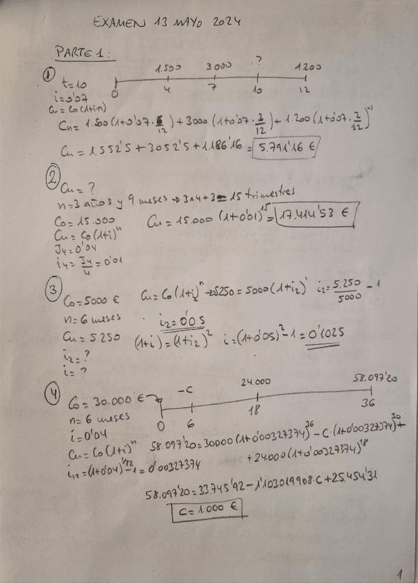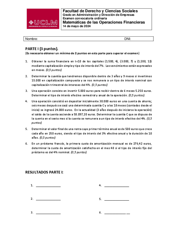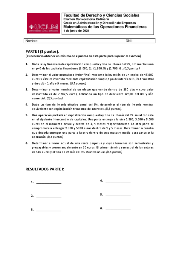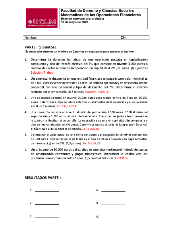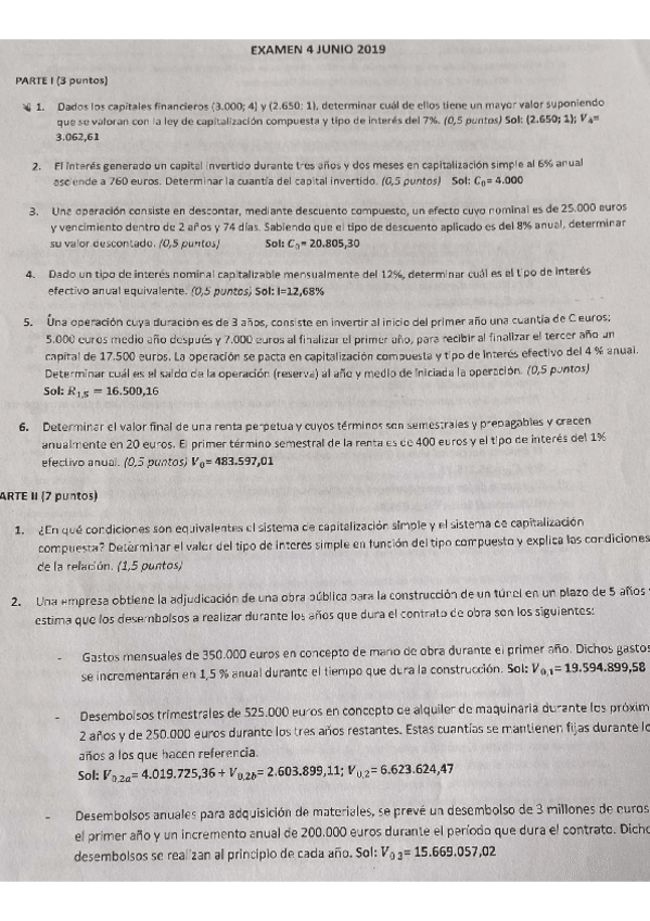 EXAMENES DE MATEMATICAS DE LAS OPERACIONES FINANCIERAS