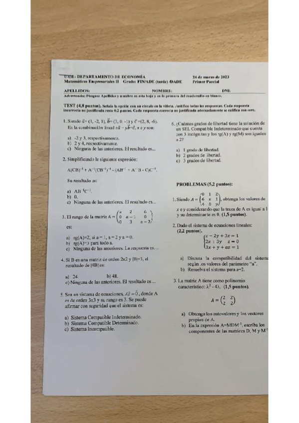 He publicado nuevos examenes de 1º Matemáticas empresariales II: Primer-parcial-Matematicas-ADE-manana-2023.pdf