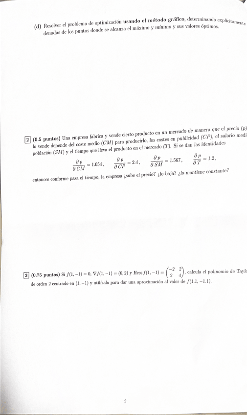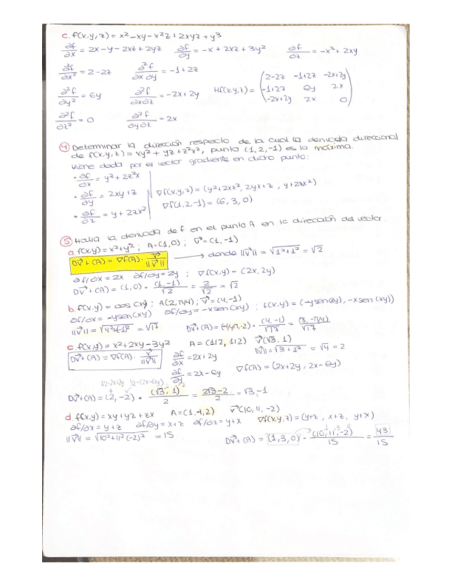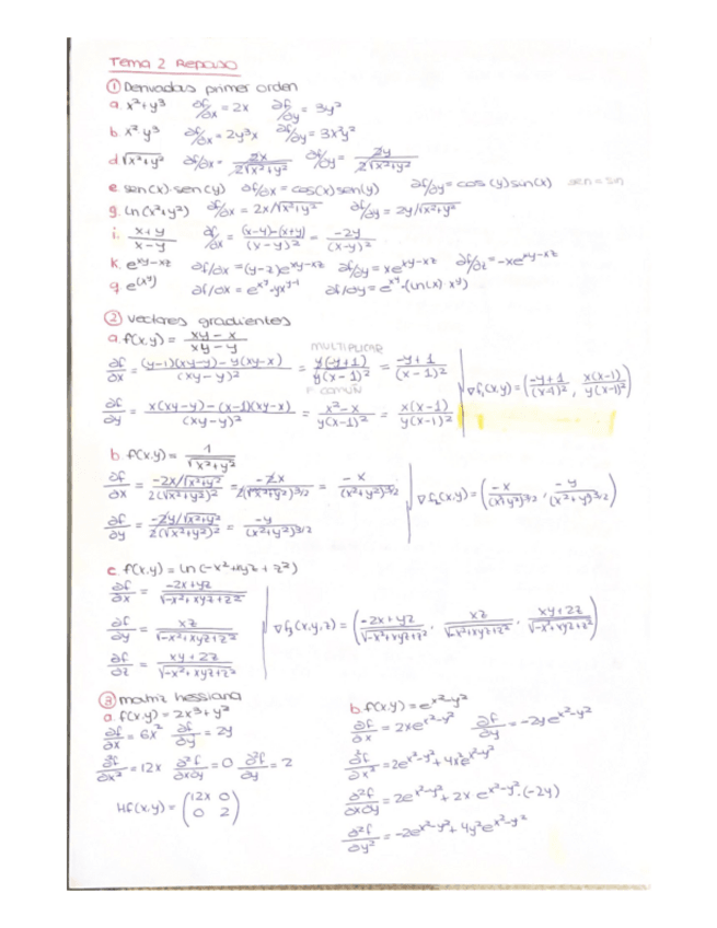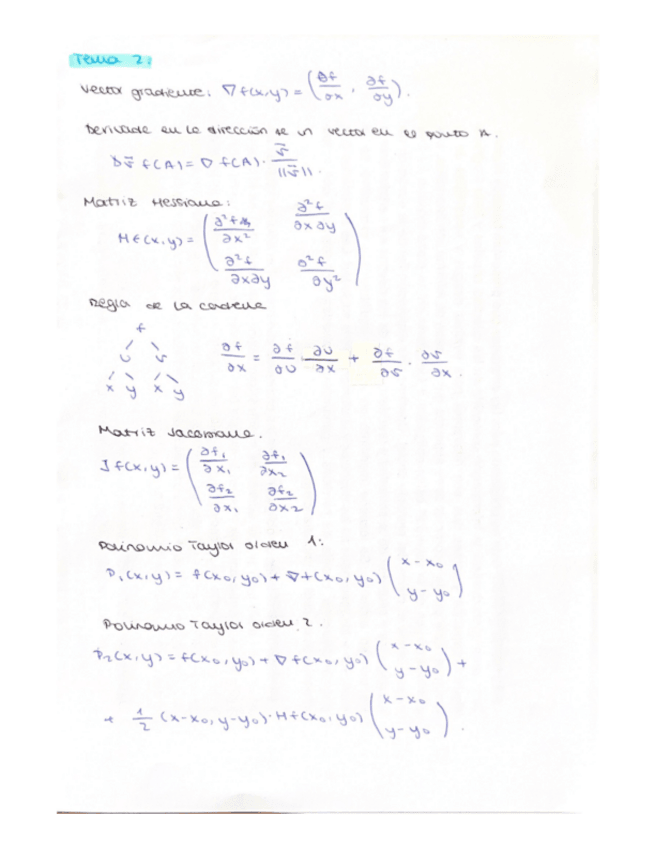 Puntos críticos y su clasificación, matriz hessiana, regla de la cadena, grado y homogeneidad de funciones