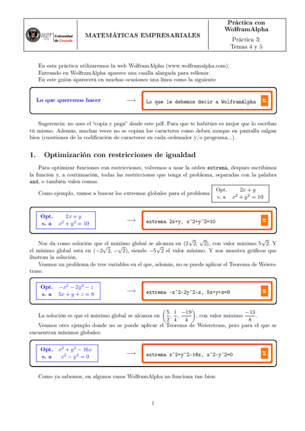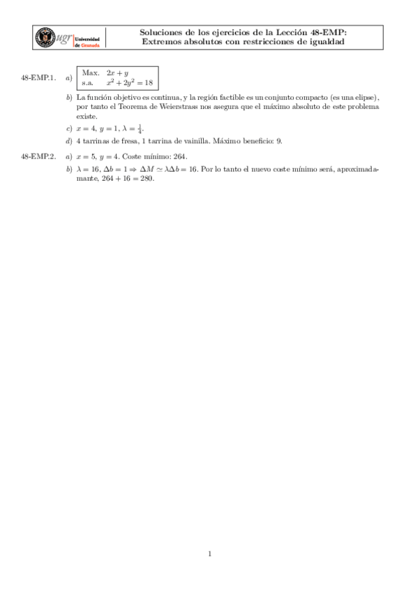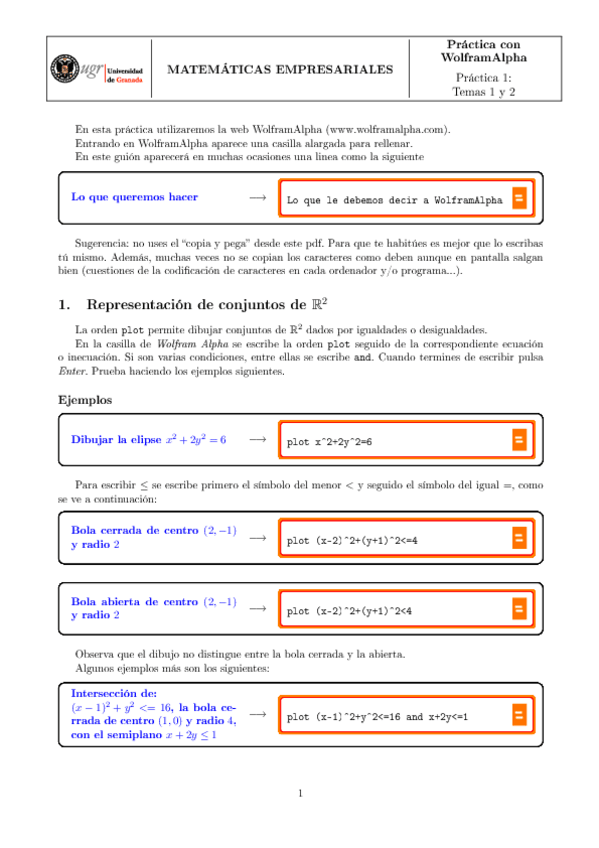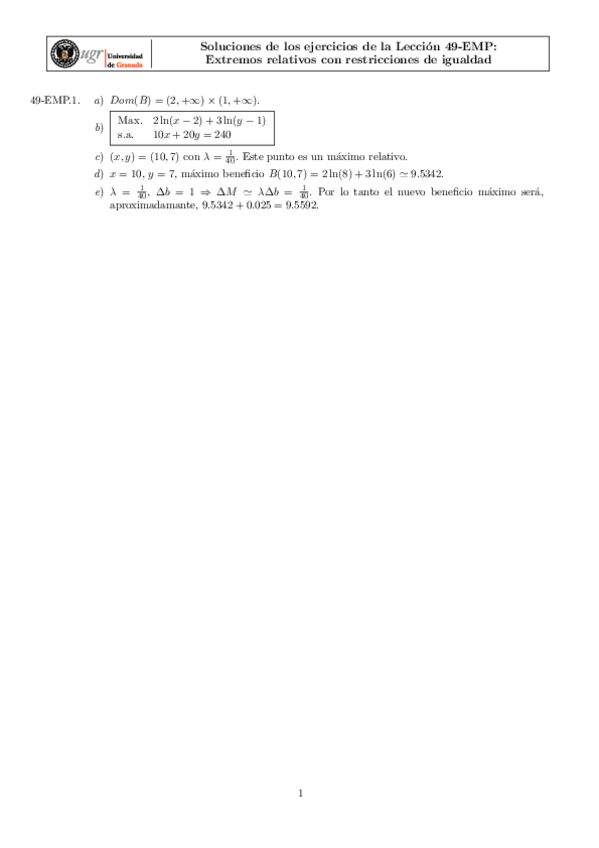 Relaciones de ejercicios con soluciones (1-6) - Matemáticas Empresariales