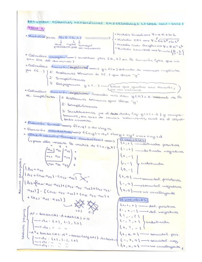 Apuntes completos de los temas 1, 2 y 3 de matemáticas empresariales, con los ejemplos y aclaraciones hechas en clase.