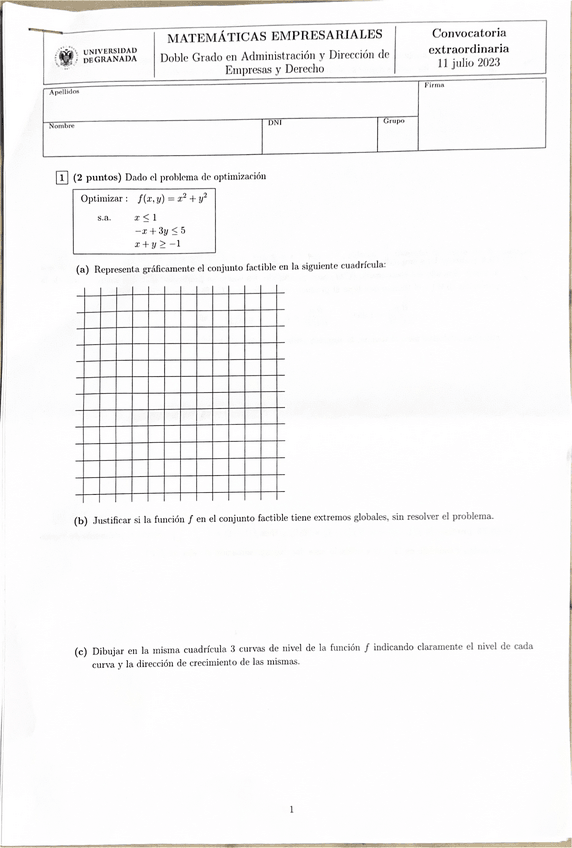 He publicado nuevos examenes de 1º Matemáticas Empresariales: Extraordinaria-julio-2023.pdf