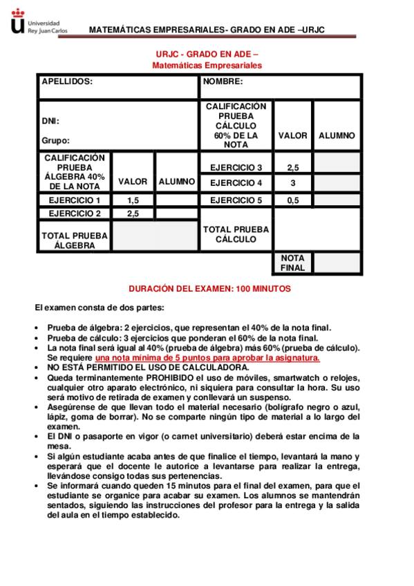 He publicado nuevos examenes de 1º Matemáticas Empresariales: Modelo-examen-Algebra-Grado-ADE-con-soluciones.pdf