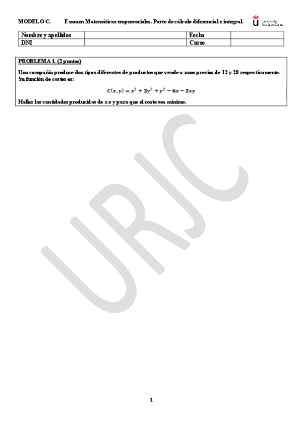 He publicado nuevos examenes de 1º Matemáticas Empresariales: MODELO-C-EXAMEN.pdf