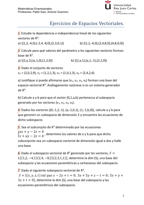 He publicado nuevos ejercicios de 1º Matemáticas Empresariales: Ejercicios-espacios-vectoriales.pdf