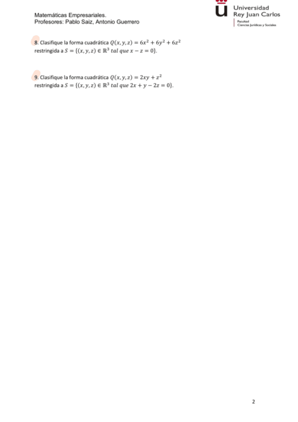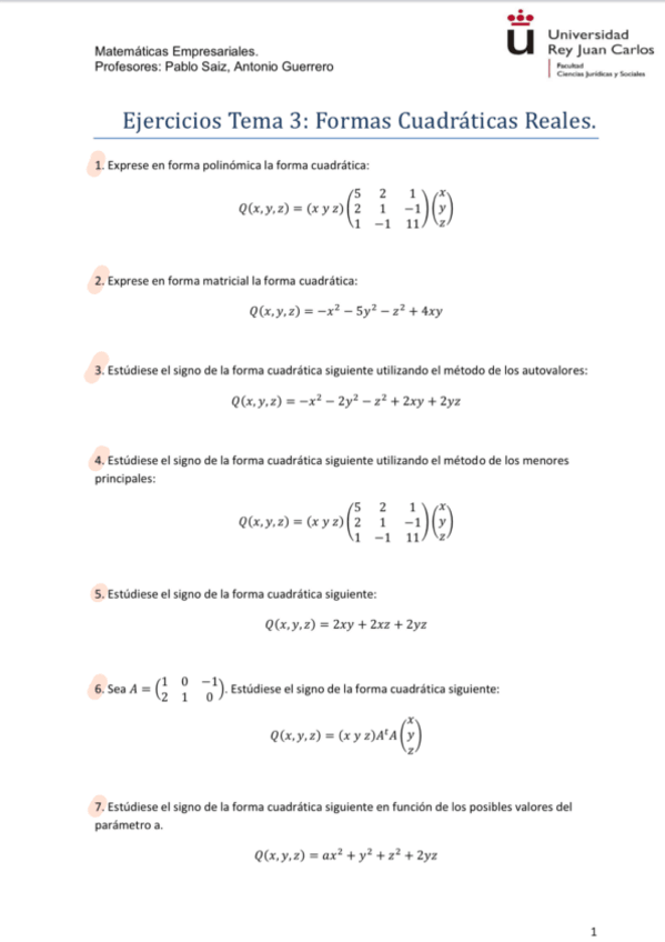 He publicado nuevos ejercicios de 1º Matemáticas Empresariales: Formas-cuadraticas.pdf
