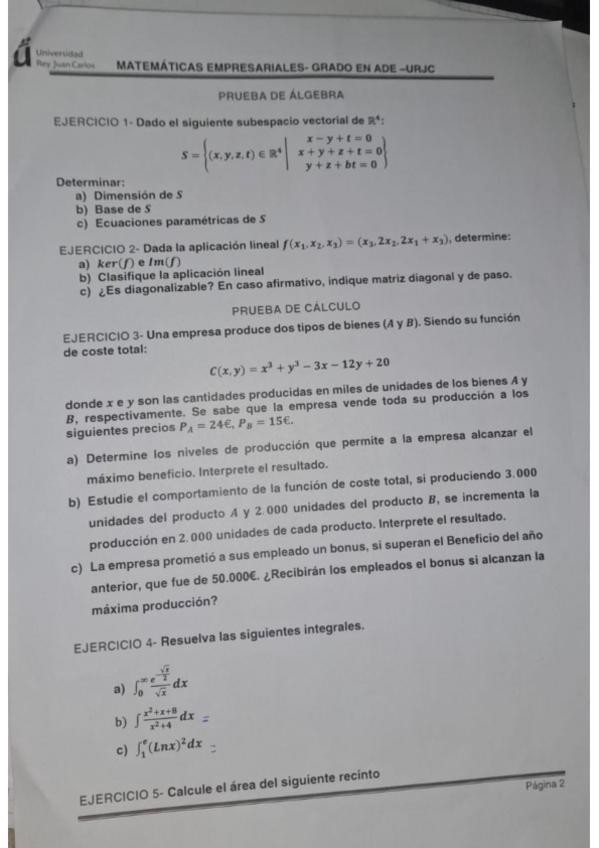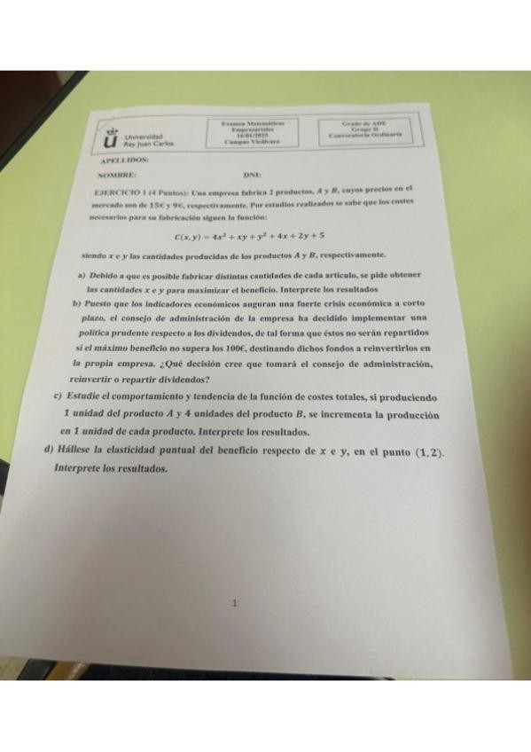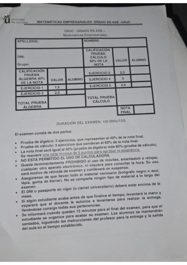 He publicado nuevos examenes de 1º Matemáticas Empresariales: PARCIAL CALCULO VICALVARO SOLUCIÓN