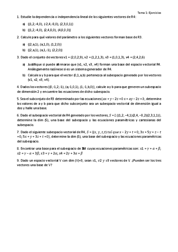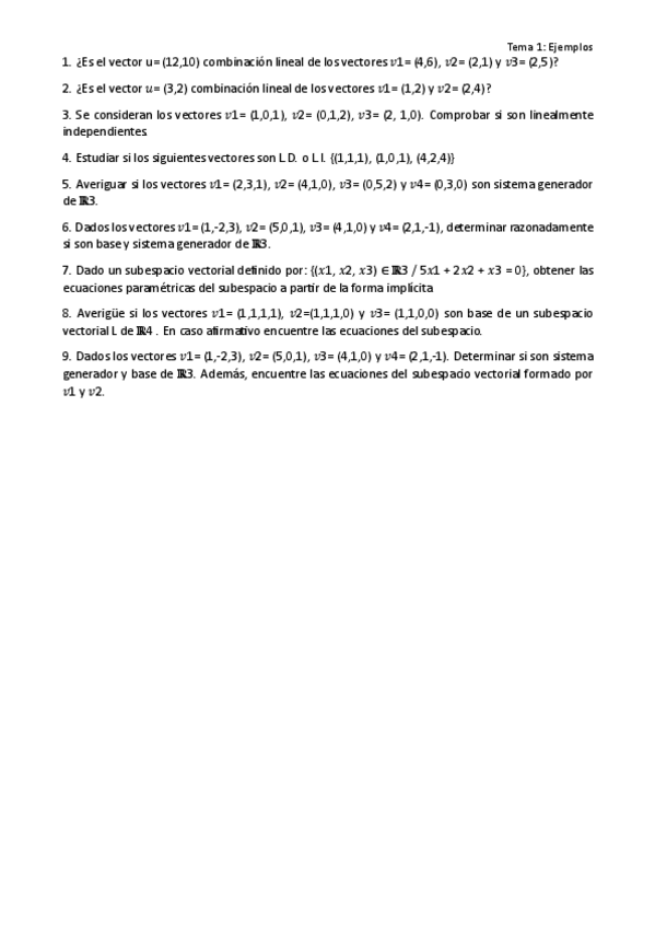He publicado nuevos apuntes de 1º Matemáticas Empresariales: Ejercicios Tema 1 Espacios Vectoriales.pdf