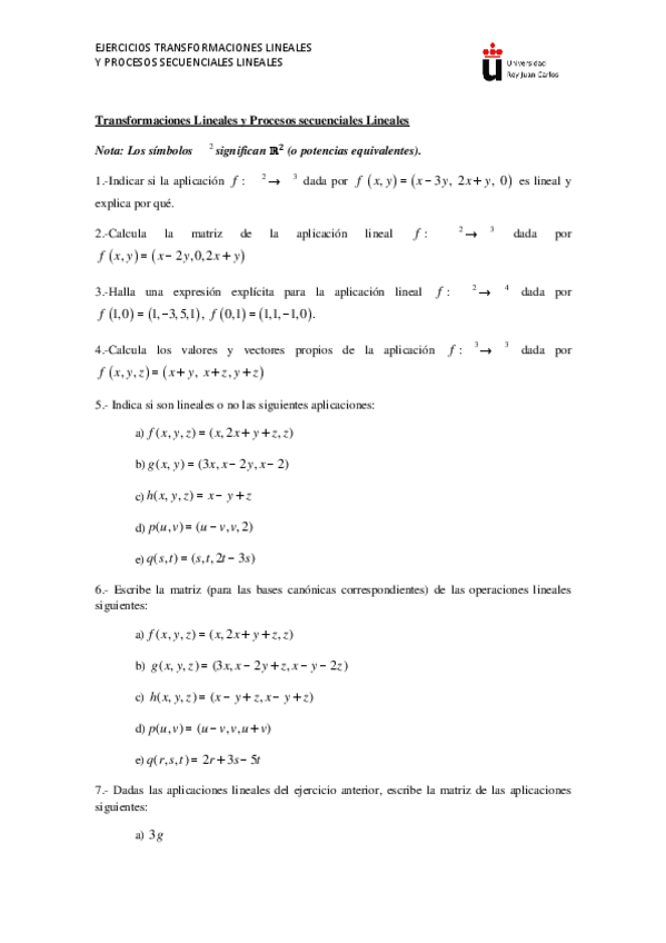 He publicado nuevos apuntes de 1º Matemáticas Empresariales: Ejercicios Tema 2 Transformaciones lineales y Procesos secuenciales lineales.pdf