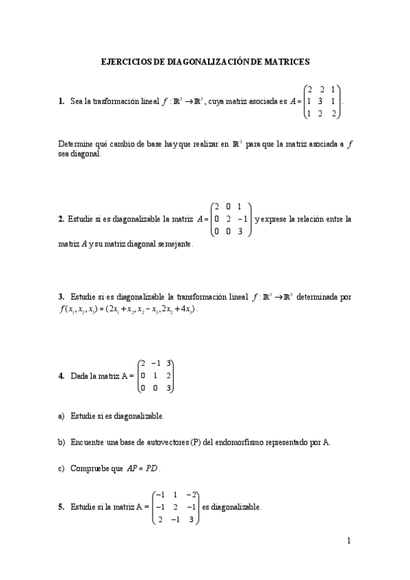 Ejercicios para prácticar de Diagonalización de Matrices.